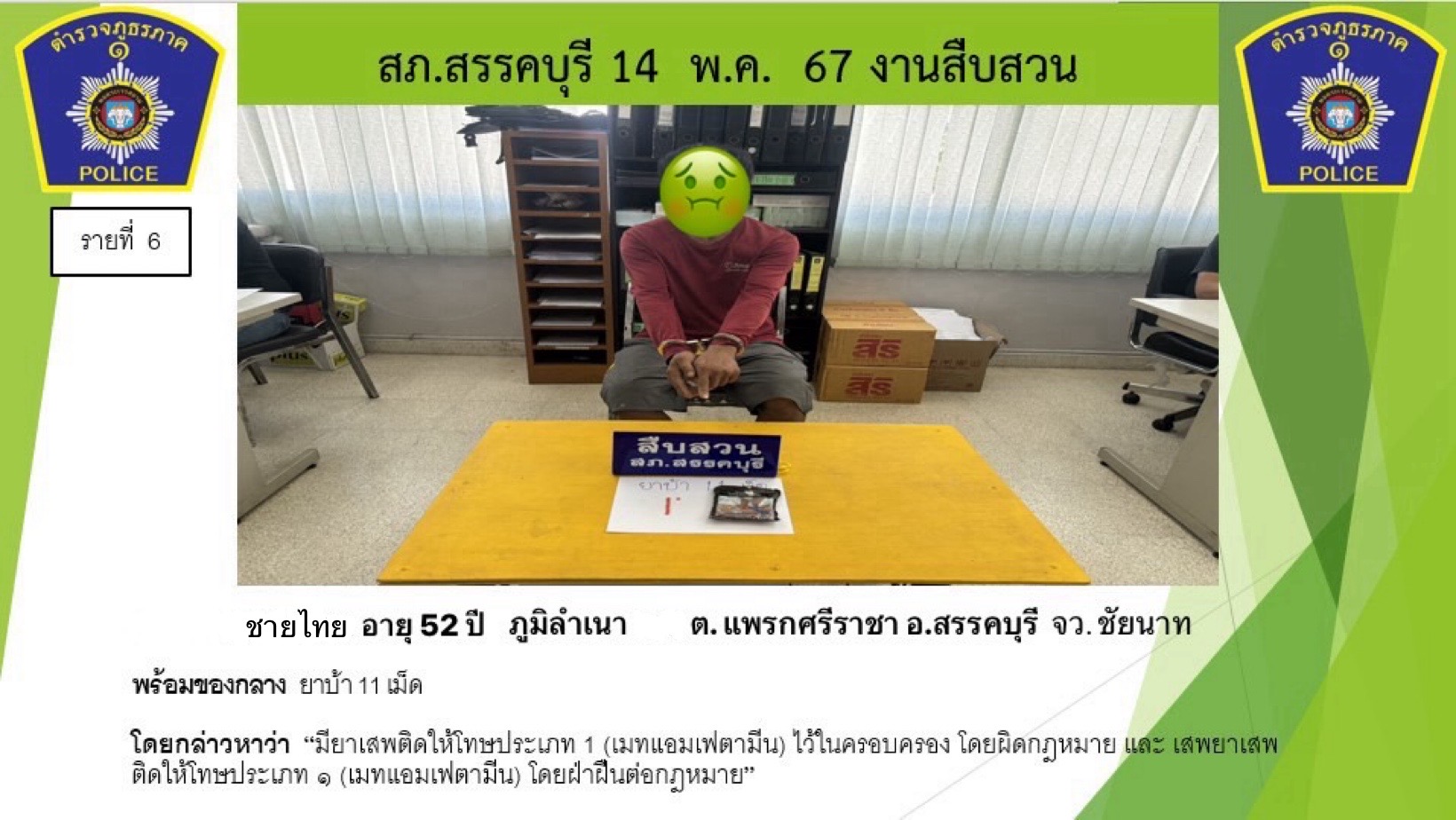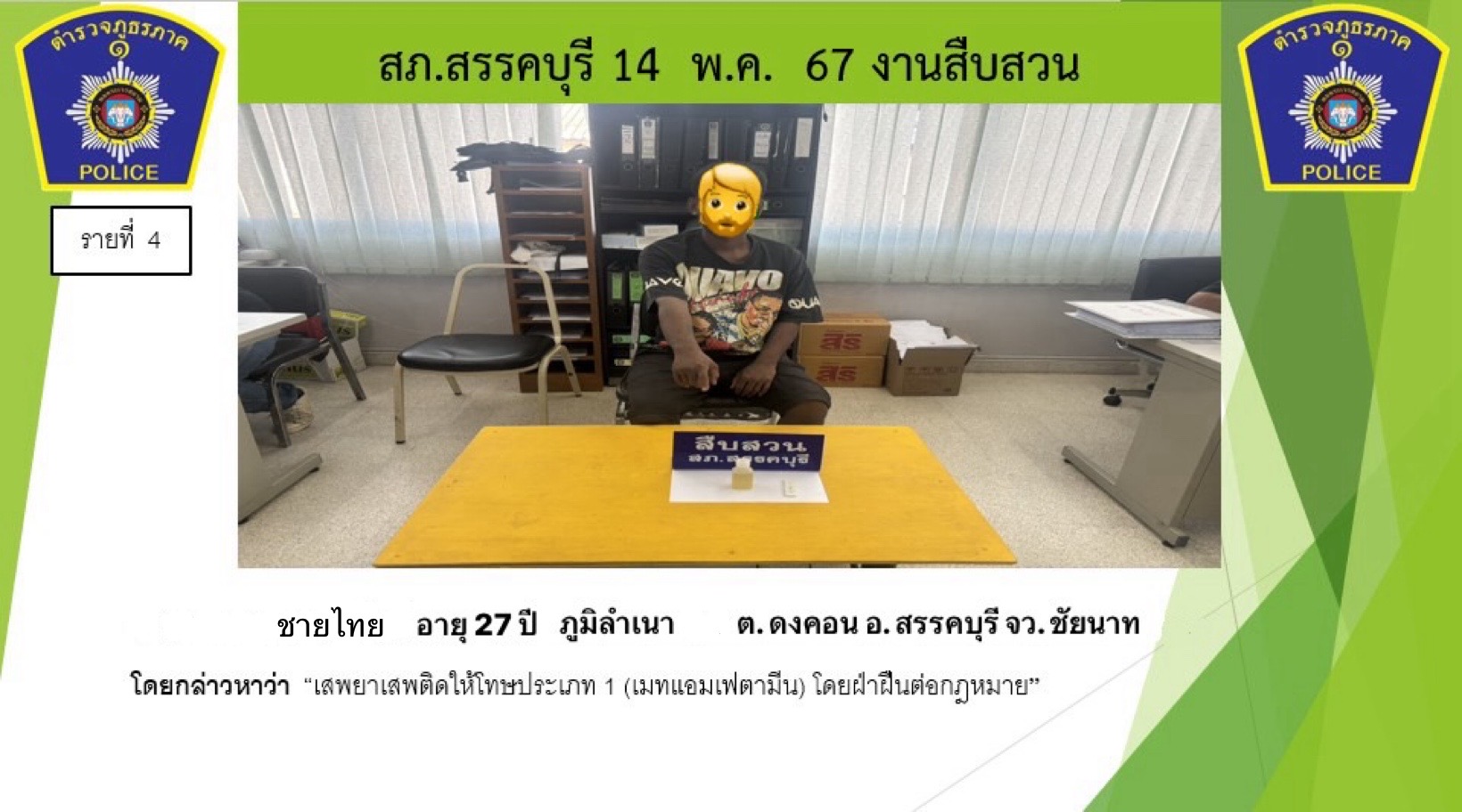 🛖 สถานที่ที่จับกุม : ม.8 ต.แพรกศรีราชา อ.สรรคบุรี จ.ชัยนาท