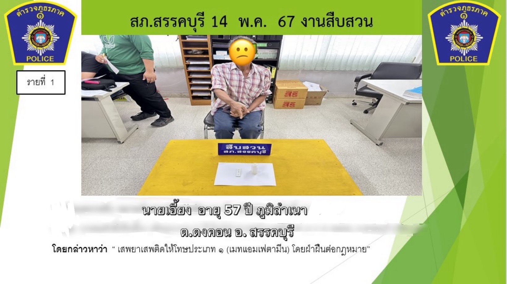 รายที่1 (ปิดล้อมตรวจค้น ตามหมายค้นศาลจังหวัดชัยนาท) จับกุม : ชายไทย อายุ 57 ปี ภูมิลำเนา ต. ดงคอน อ.สรรคบุรี จ.ชัยนาท