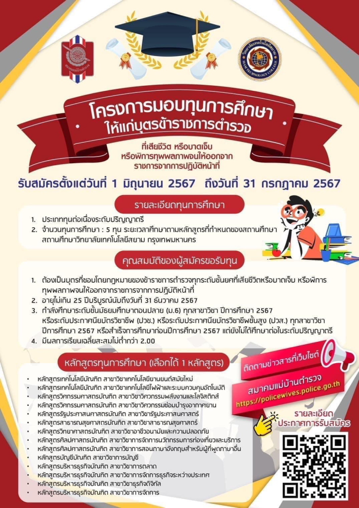 โครงการมอบทุนการศึกษาให้แก่บุตรข้าราชการตำรวจที่เสียชีวิตหรือบาดเจ็บจากการปฏิบัติหน้าที่หรือพิการทุพพลภาพจนให้ออกจากราชการ จากการปฏิบัติหน้าที่ (ทุนต่อเนื่องระดับปริญญาตรี) จำนวน 5 ทุน