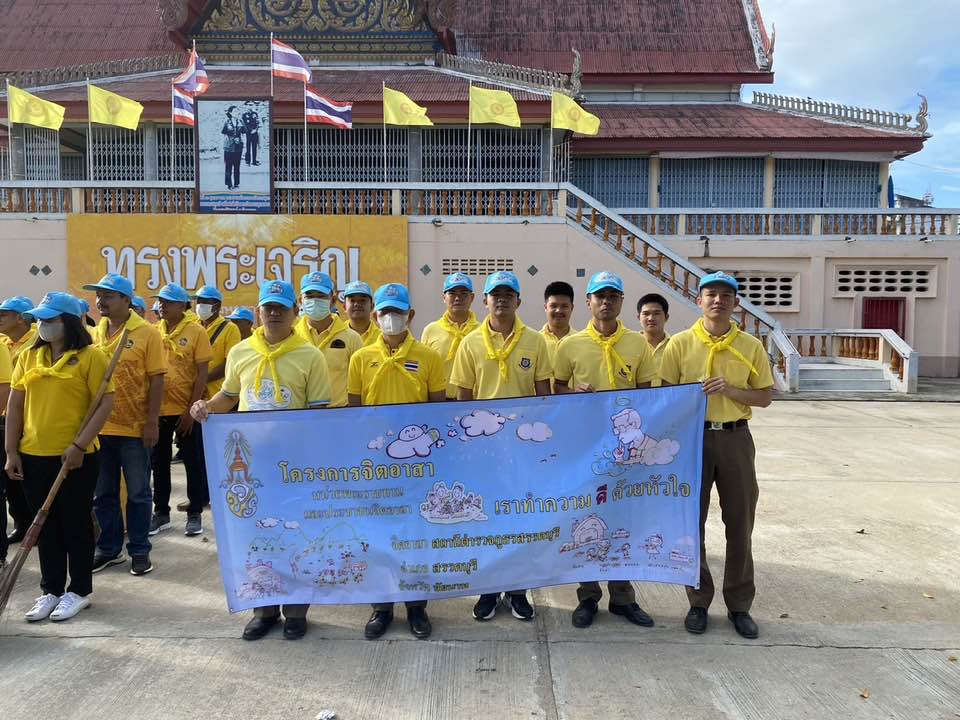 สภ.สรรคบุรี ร่วมกับ ประชาชน ร่วมกิจกรรมจิตอาสาพัฒนาสาธารณประโยชน์ ปรับปรุงสภาพแวดล้อมริมถนน เพื่อป้องกันอาชญากรรม ทางเข้าวัดหนองบัว